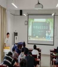 21级研究生常层、陈欣欣、陈赋章、李小飞分别考取中国人民解放军国防科技大学、同济大学、华南理工大学和山西大学,这4名学生党员分别用幽默风趣的语言结合着自身经历分享了其考博历程和心得体会,其中包括对院校选择、学习计划、考试准备、面试技巧等各方面的经验以及独特见解,使在场的各位同学能够提前“亲身”感受一次考博的全部流程,激发了大家的学习热情。