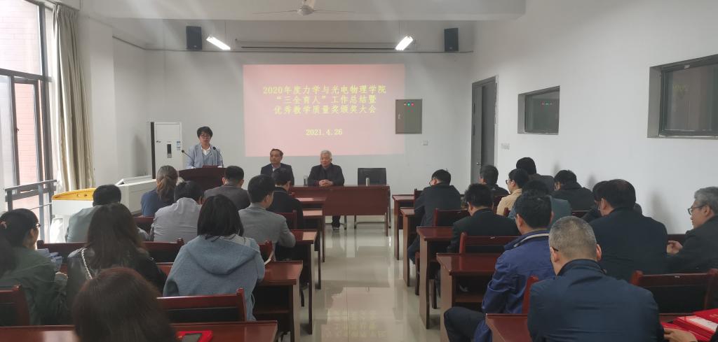 召开2020年度“三全育人”工作总结暨优秀教学质量奖颁奖大会,全体教职工参加会议。会议由副院长圣宗强主持。